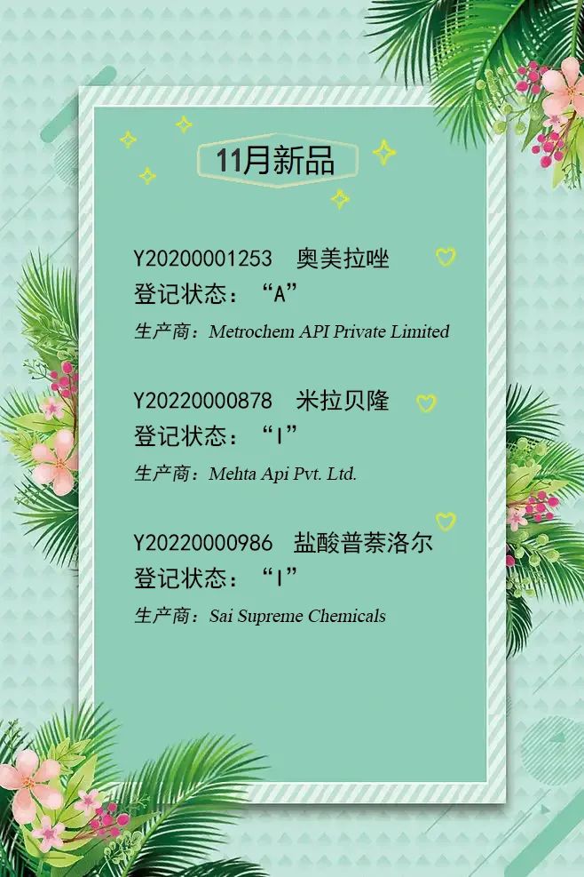 沪源医药11月再增3个品种:奥美拉唑(转A)、米拉贝隆、盐酸普萘洛尔(I)
